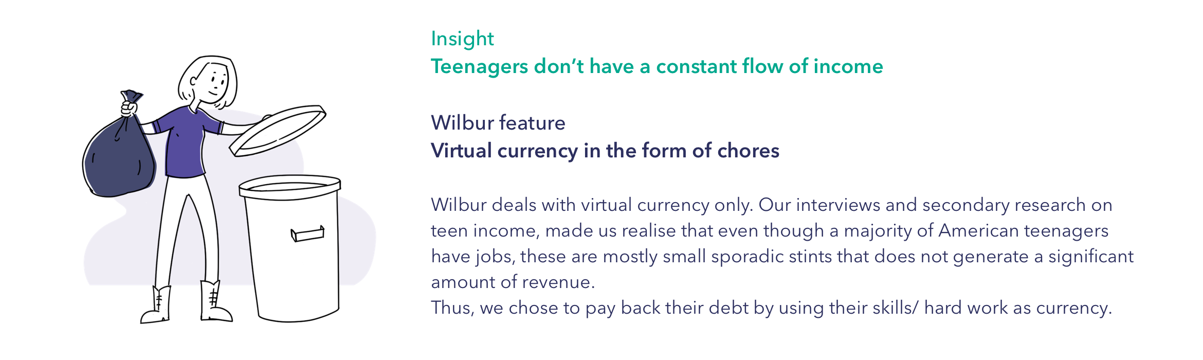 Our interviews and secondary research on teen income, made us realise that even though a majority of American teenagers have jobs, these are mostly small sporadic stints that does not generate a significant amount of revenue.